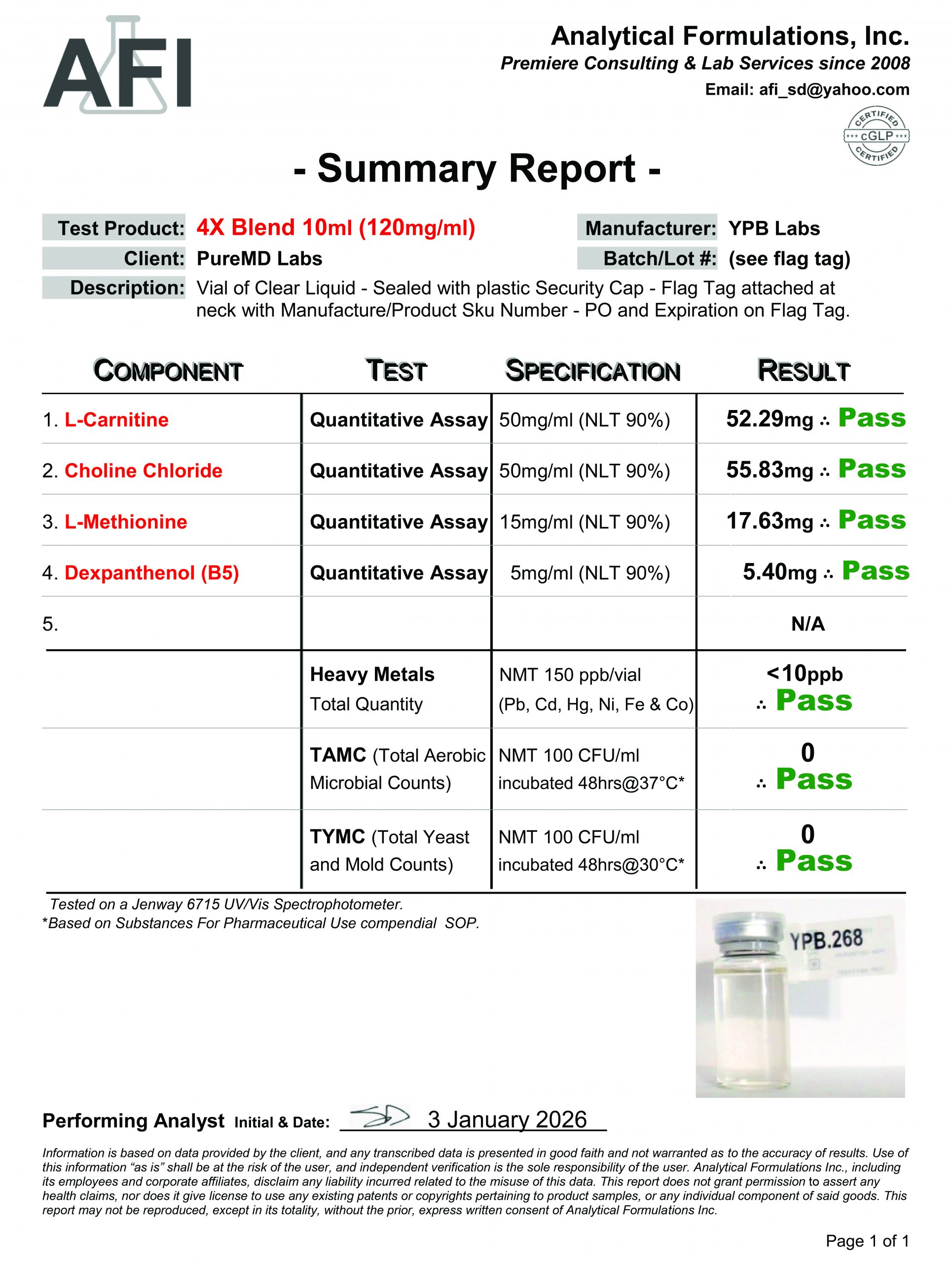 4X Blend Methionine (15mg) / Choline Chloride (50mg) / Carnitine (50mg) / Dexpanthenol (5mg)