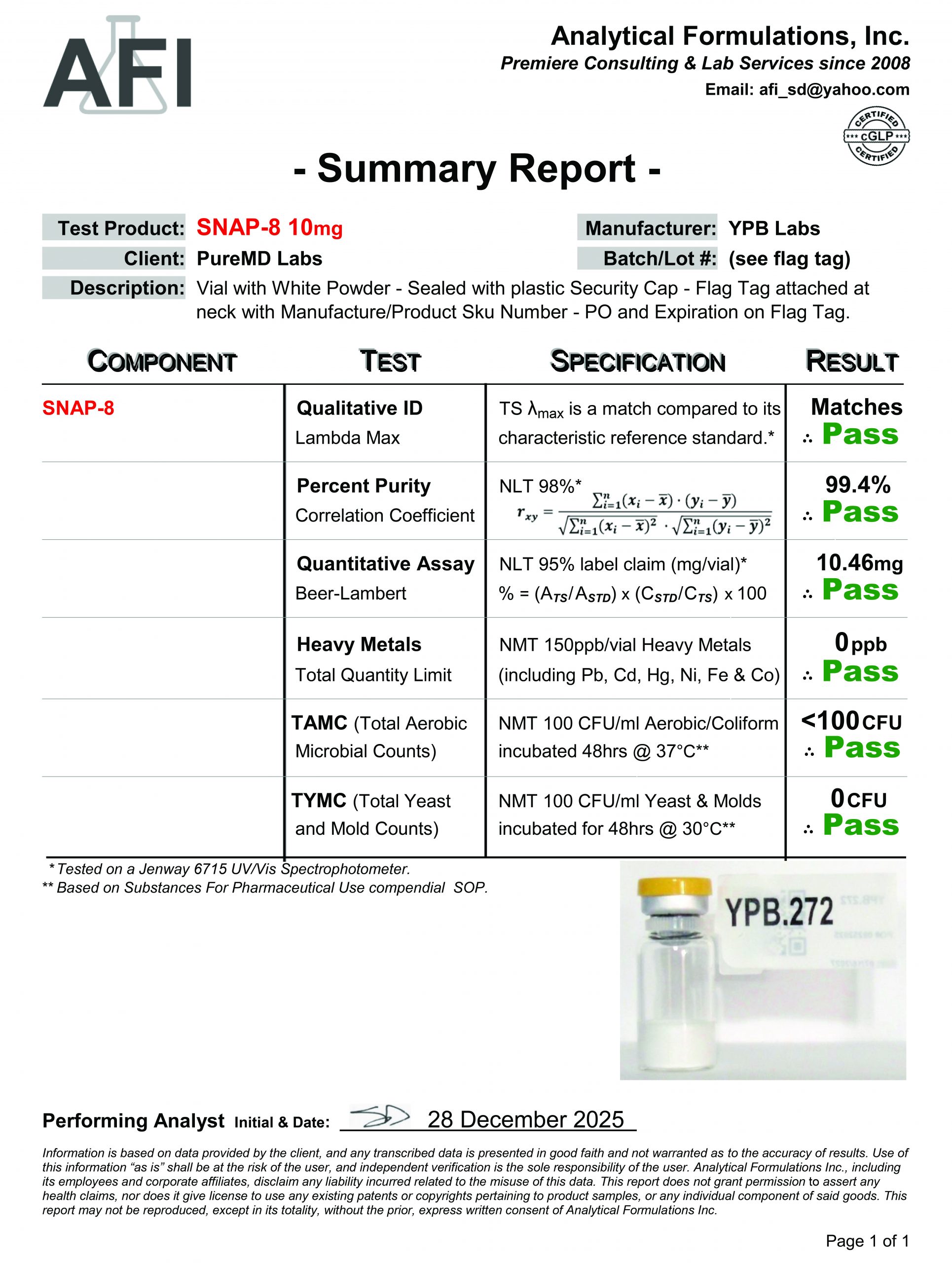 Certificate of Analysis
